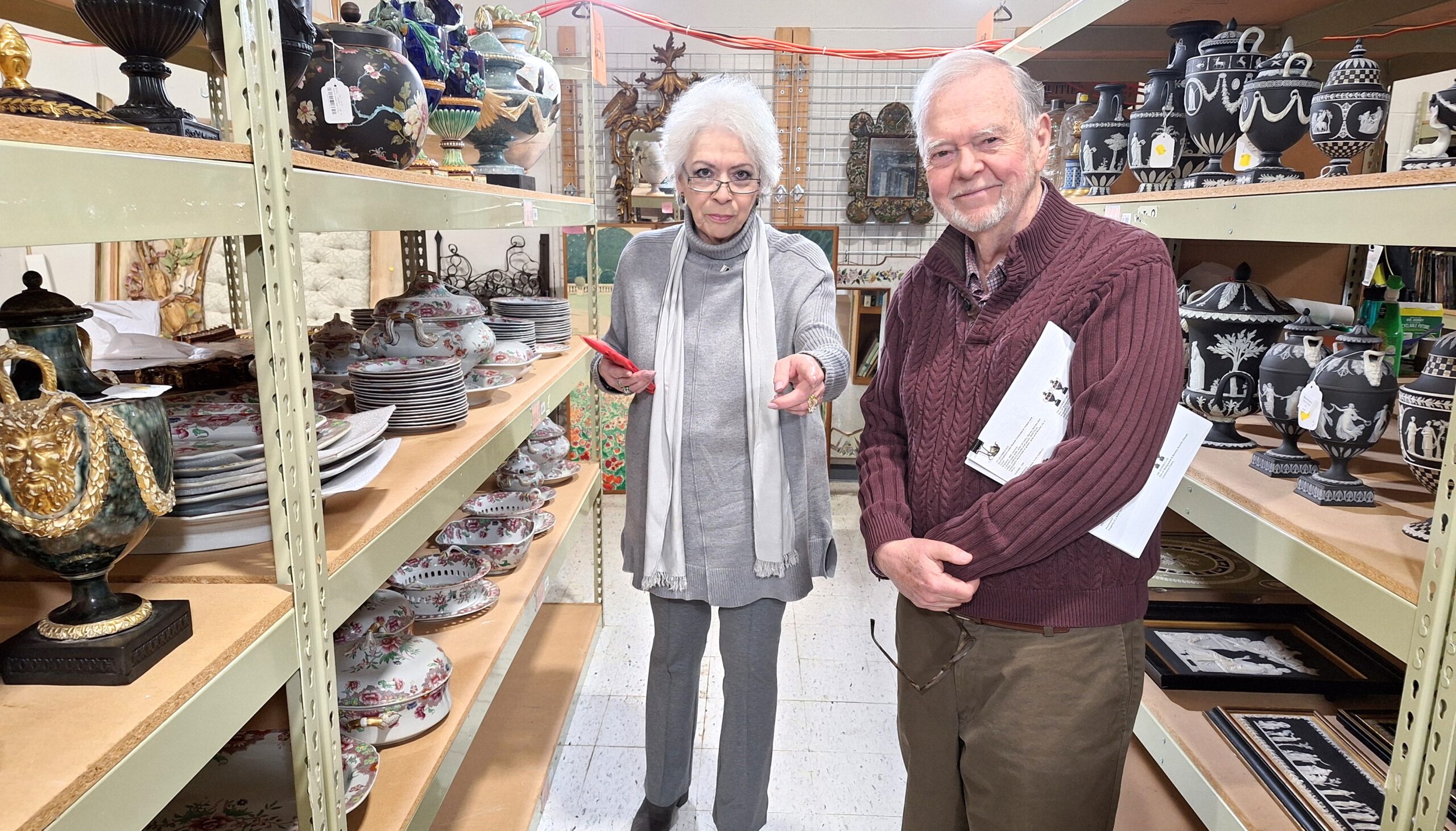 The March 18, 2026, sale of 110 lots of Wedgwood wares – as part of the Fine Wedgwood & Silver auction offer by Bonhams-Skinner online – was previewed in person on the 13th at the Marlborough, Massachusetts, location by a group of WSB members. We thank Stuart Slavid for his invitation and guidance, and we followed the gallery tour with a lively luncheon at a local Italian restaurant.