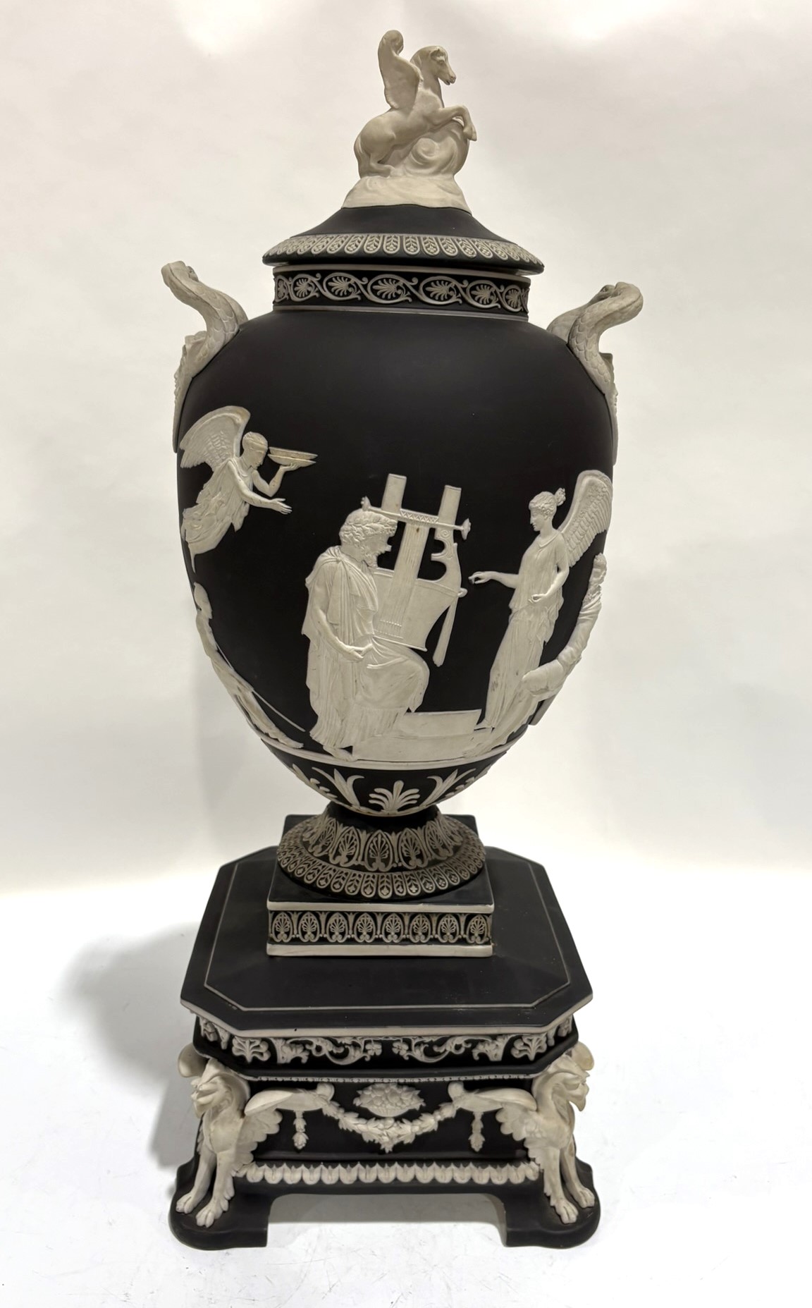 - – Black Jasper Apotheosis Pegasus Vase w/Stand: 19th C; 24 1/2” h: $8,320