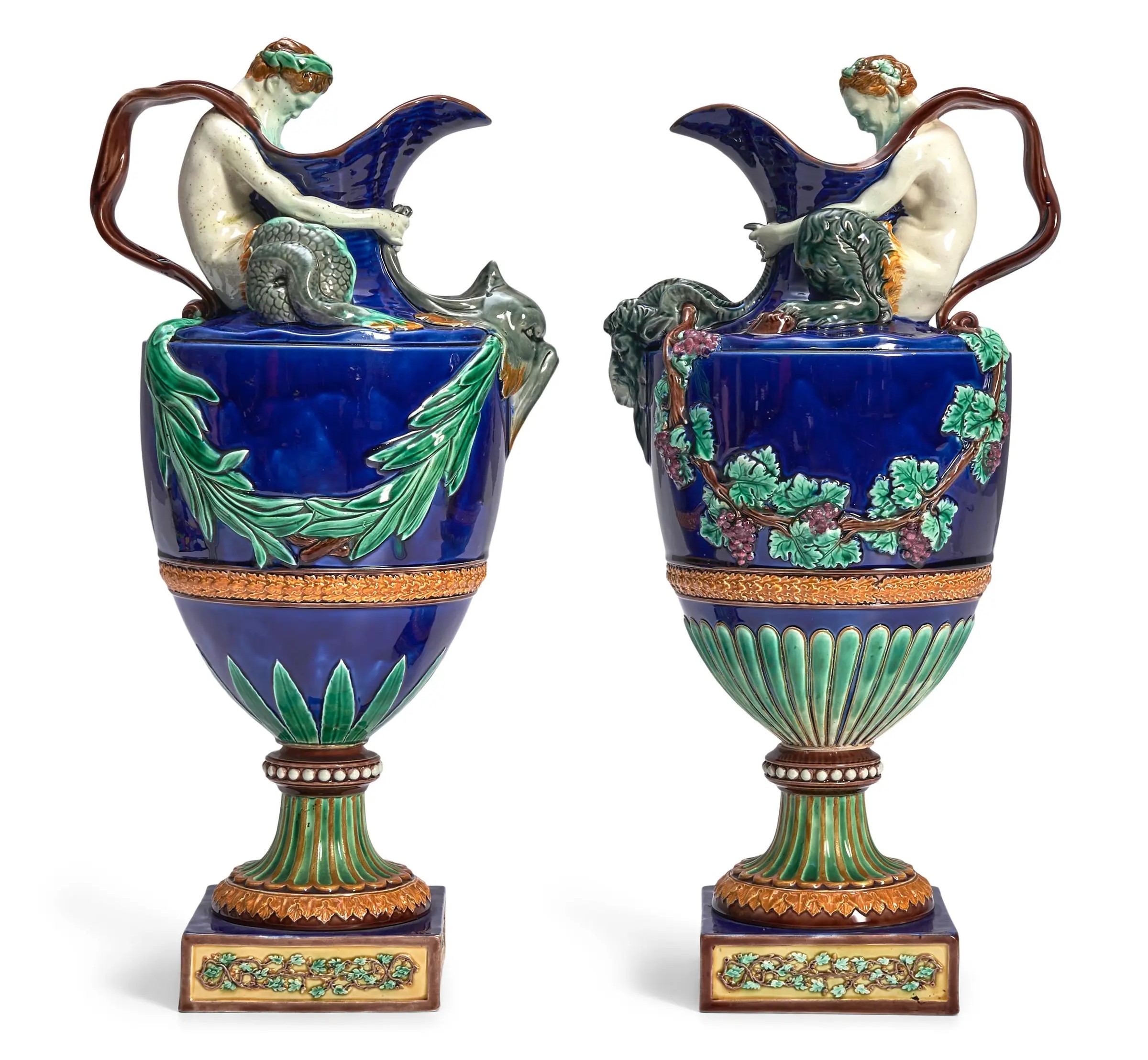 - -Pr Majolica Wine & Water Ewers: c1865; 16 3/4”: $2,304