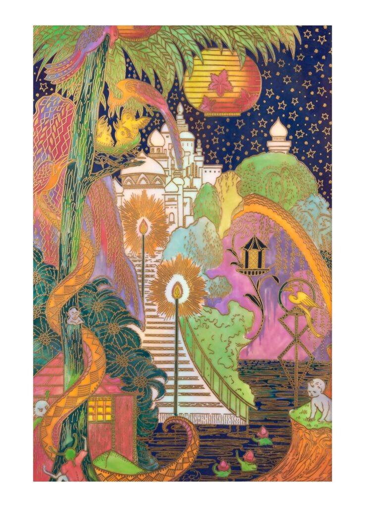 - – Fairyland Lustre Plaque: modern repro; 7 3/4” x 11 1/2”: $896